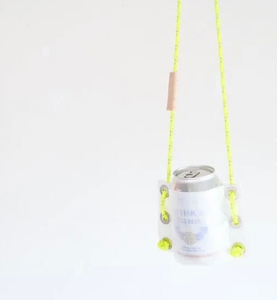 製作の過程で生まれるロープとファブリック(生地)の端材を組み合わせて、できるだけシンプルな素材、工程で形にすることがテーマのシリーズ。第一弾は外でビールを楽しむための「ビールホルダー」です。